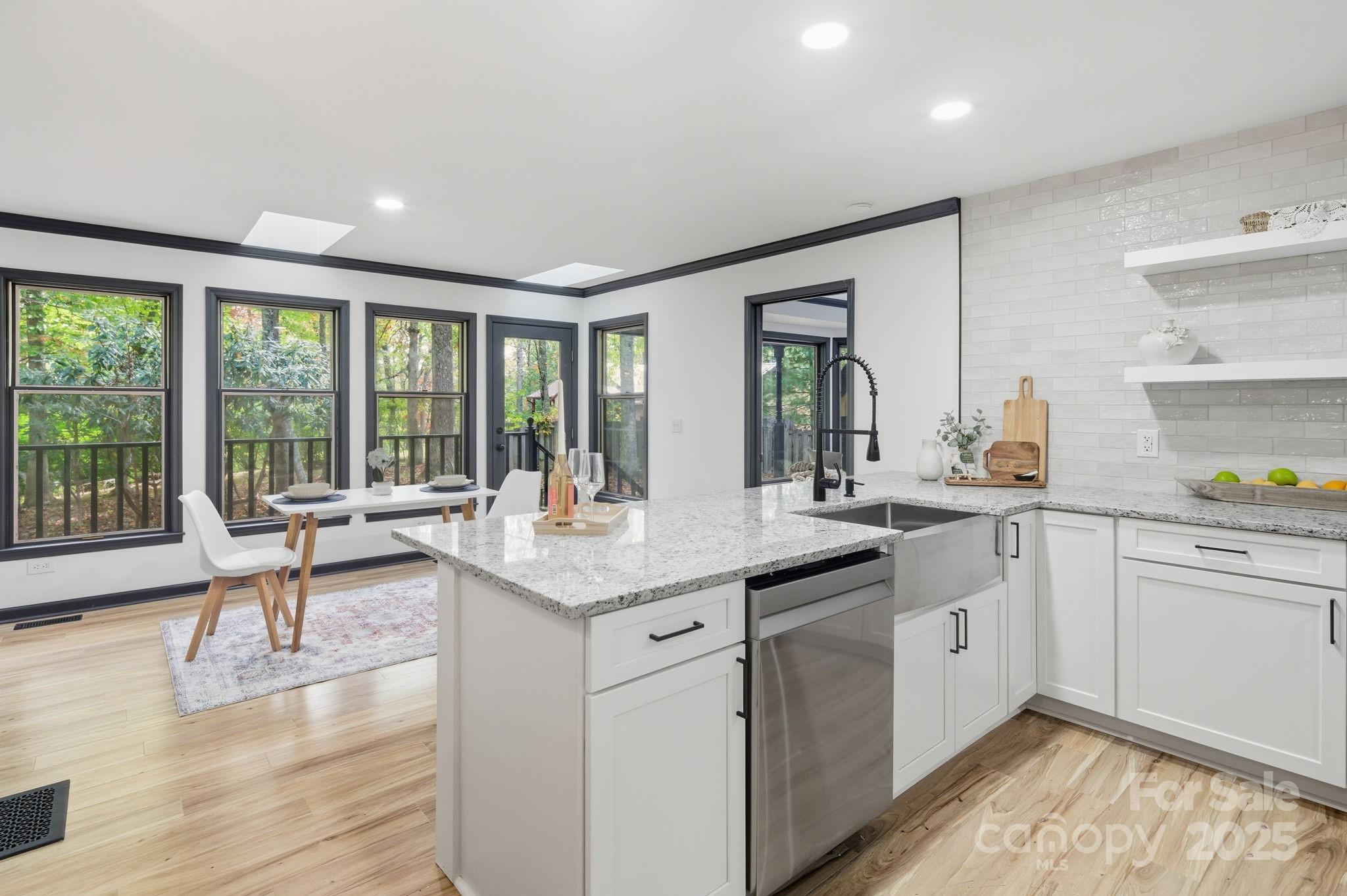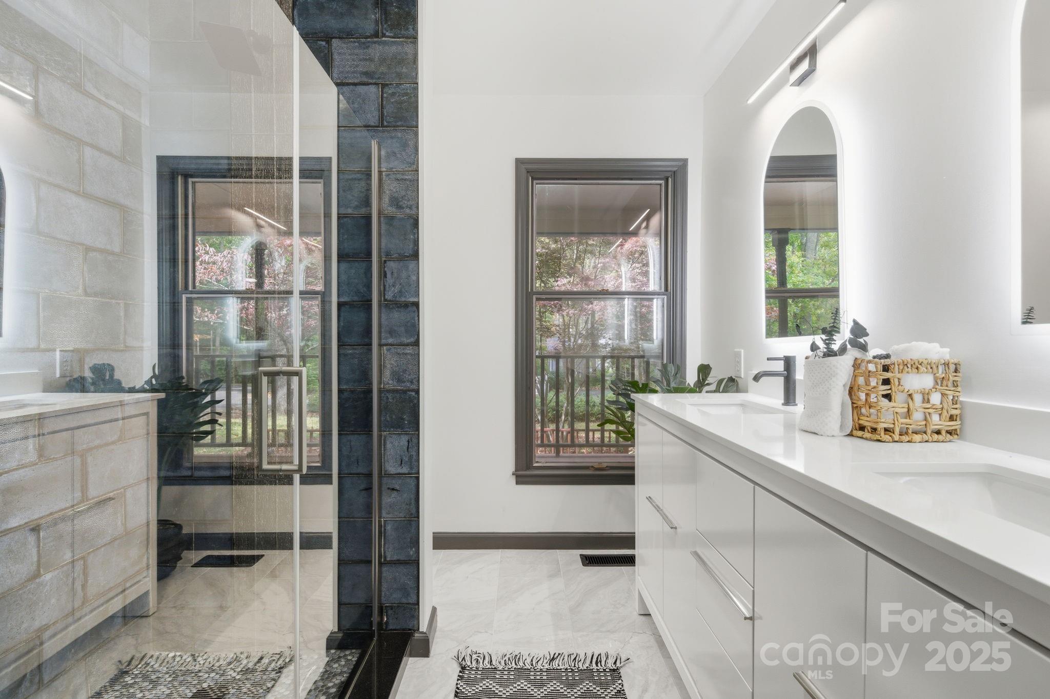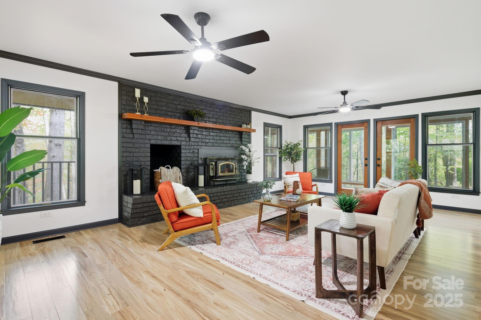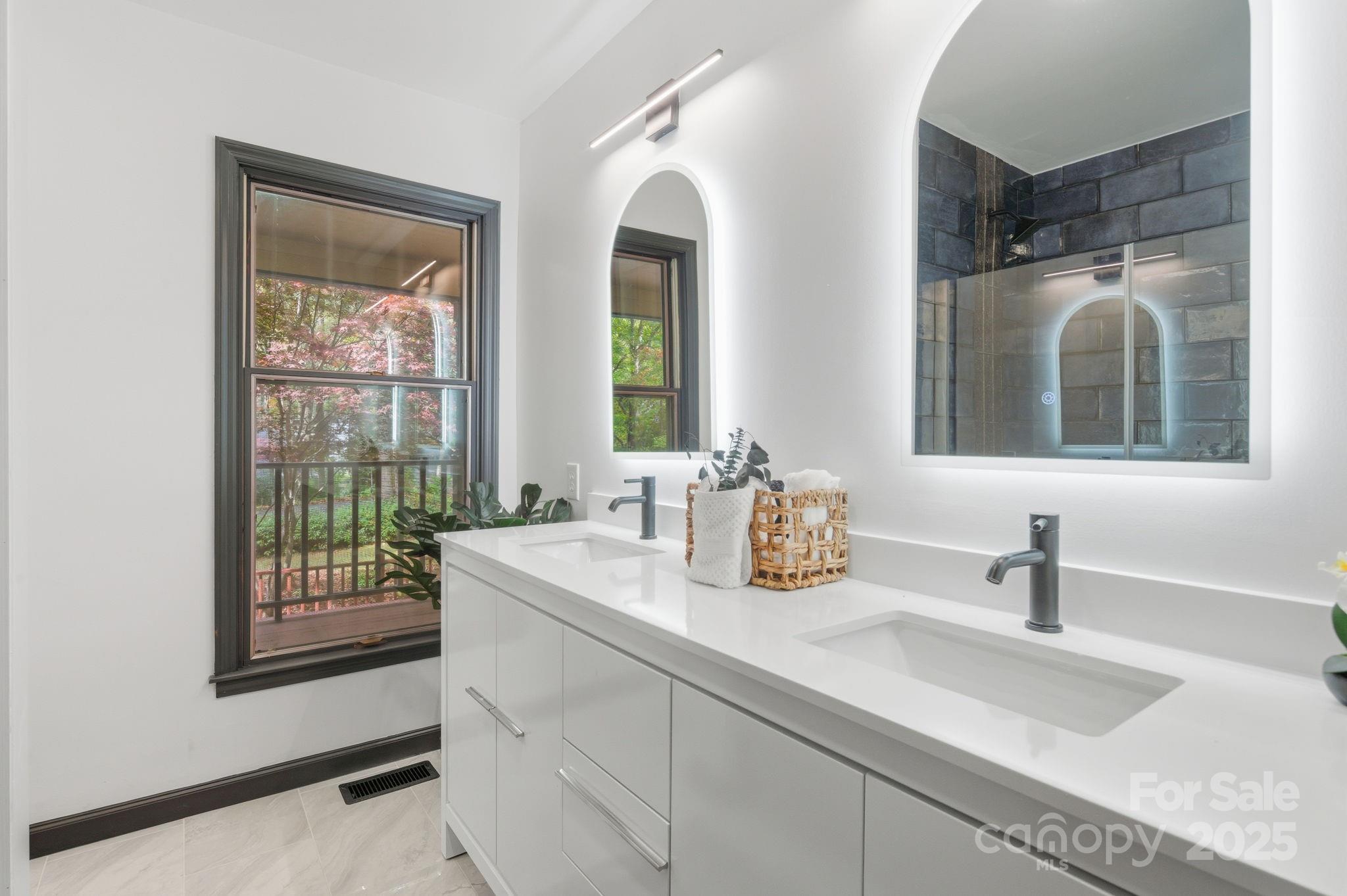 Welcome to 8 Indian Ridge Road! This spacious home, featuring 3 bedrooms and 2.5 baths in the main home, also has a finished space over garage that has an additional full bathroom. Situated on a generous 1.26 acre lot on a quaint wooded cul-de-sac, this home has lots of natural shade and nature-provided privacy from the old growth trees surrounding. Having been completely updated with a full remodel, you'll appreciate all the fine details. This Cape Cod style home has an inviting wrap around covered porch covered with narrow plank wood, offering a great place to relax in rocking chairs and enjoy the Fall breeze. Follow the porch around to the back and enter the glass enclosed Carolina room, offering a respite to enjoy the outdoors even when cooler outside. As you enter the front door, you'll appreciate the new waterproof laminate wood flooring throughout the main level. The large living room features a centerpiece brick fireplace with Buckstove wood burning insert to keep cozy on the colder nights. The fully remodeled and modernized kitchen is open to a nice dining area and there is a half bath on main for guests. Don't overlook the built-in coffee bar nook also! The Primary Bedroom is also on the main level and features an en-suite full bath with dual vanities and custom tiled walk-in shower. Upstairs you will find two additional bedrooms, each having a total of three closets, including a nice walk-in. Laundry closet is also located upstairs. Out the backdoor, you'll find the breezeway to the utility room and detached two-car garage. Stairs will lead you up to the finished space over garage which has a nice carpeted room and full bathroom with shower. There is a utility shed and a shop building with power and foam board insulation - possibilities are endless for what you do with this extra space! You'll appreciate the fenced back yard where the outdoor firepit area is - a great place to entertain friends or just relax! If you're worried about losing power in inclement weather, don't - this home has a Generac whole home generator included. If you are looking for living in the heart of Western NC with privacy and also a neighborhood feel, then this home has it all. Truly move-in ready! Take the virtual tour here: https://my.matterport.com/show/?m=FCLQgB346oE& and see the property video here: https://listings.wncrealestatephotography.com/videos/0199e881-a69f-721f-8cbe-8e8d1e262800