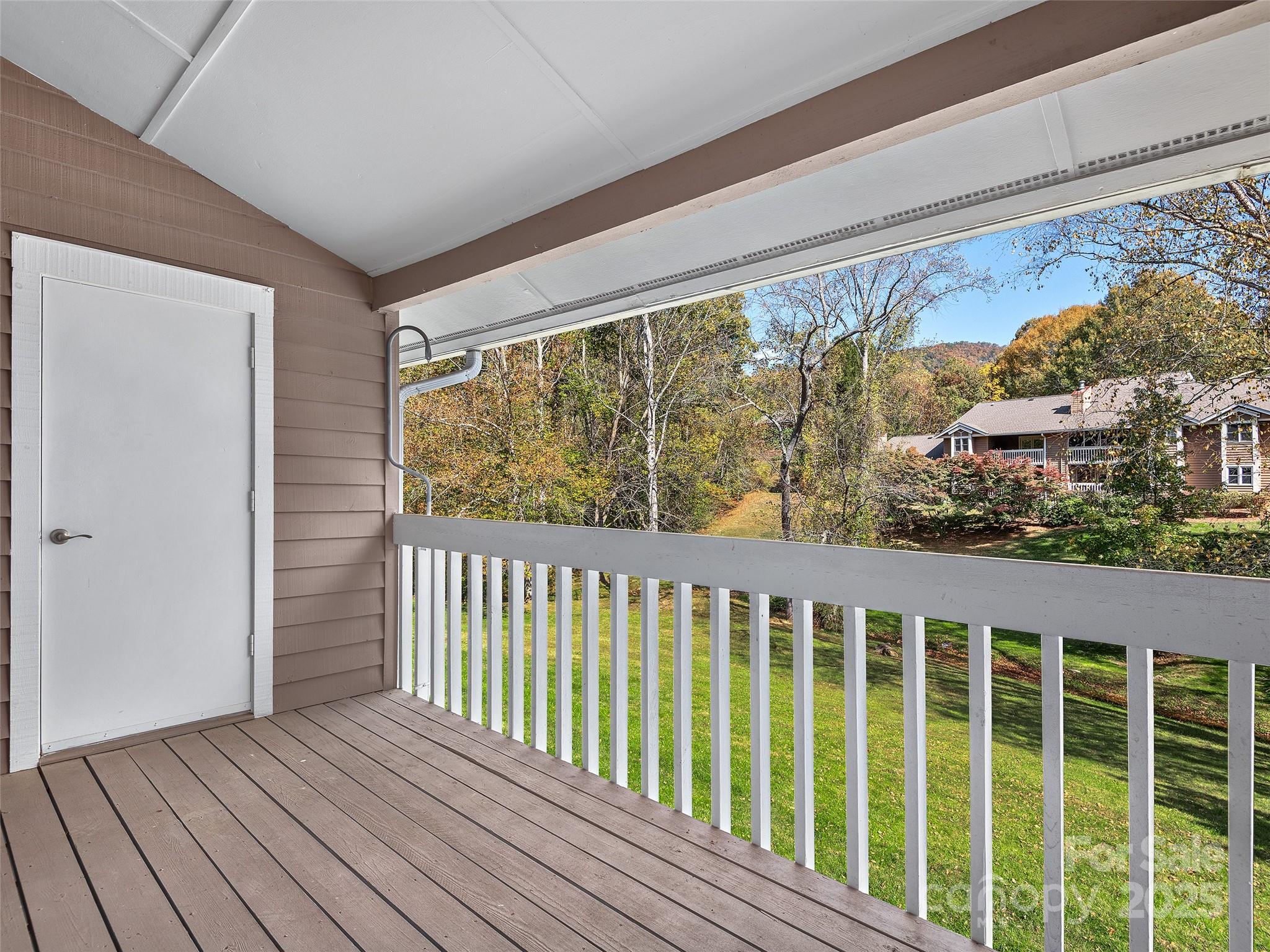 Nestled in the tranquil Creekside Condominiums at Laurel Creek, this charming 2-bedroom, 2-bathroom unit offers the ideal blend of comfort, style, and resort-like convenience. This second floor condo boasts an open-concept floor plan, creating a bright and airy atmosphere for entertaining and daily living. A spacious family room and dining area features vaulted ceilings and a cozy wood-burning fireplace, while the large kitchen offers tons of storage, a breakfast bar, glass cabinet doors, and plenty of room to work. The primary bedroom includes a private ensuite bathroom with shower-tub. Step out onto your private covered deck to enjoy a serene view of the beautifully maintained grounds, complete with mature trees and babbling creek. The community enhances your living experience with fantastic amenities, including a refreshing outdoor pool for sunny days, tennis courts for friendly matches, and a welcoming clubhouse for social gatherings. Conveniently located off Hwy 74/Charlotte Hwy, this home is just a short drive from everything Asheville, Biltmore, and the stunning Blue Ridge Parkway. An excellent investment with long-term rentals permitted.