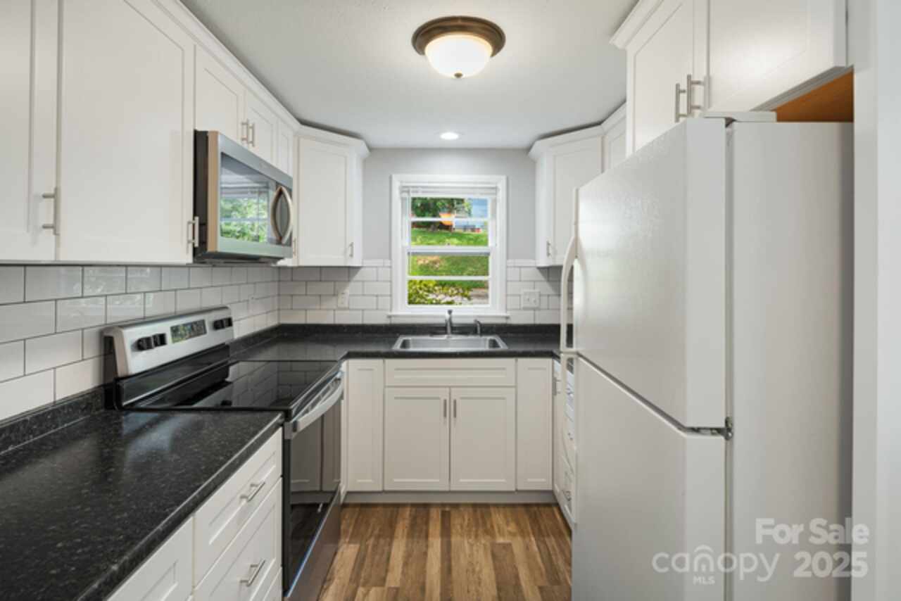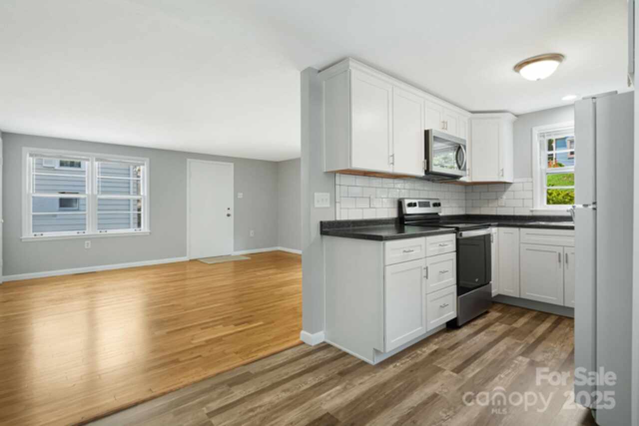 Best combo of updating and price in N. Asheville! Adorable remodeled cottage is neat as a pin, in a fantastic neighborhood, and ready for new owners to love it as much as the seller has for 40+ years! Where to start? Let's go with remodeling. The heavy lifting has been done for you-remodeled kitchen (cabinets/counters/backsplash/LVP flooring/sink, and all appliances except the fridge), full bath and 1/2 bath (vanity/toilet/LVP flooring), interior/exterior paint, modernized electrical/plumbing, fixtures/fans, etc. HVAC completely replaced in 2022. The floor plan is flexible-living room with bay window, 10' X 17' primary BR, flex space with a 3rd BR/office that opens up to 500+ SF of decking, and gorgeous refinished hardwoods and new LVP flooring. Covered front porch/patio, large deck overlooking a lush backyard, and parking for 3-4 cars. Oh yeah, the location! Just a few blocks off of Merrimon Ave, less than 5 minutes to UNC-A, downtown, and I-26/I-240. So much to love with this one and priced just right!