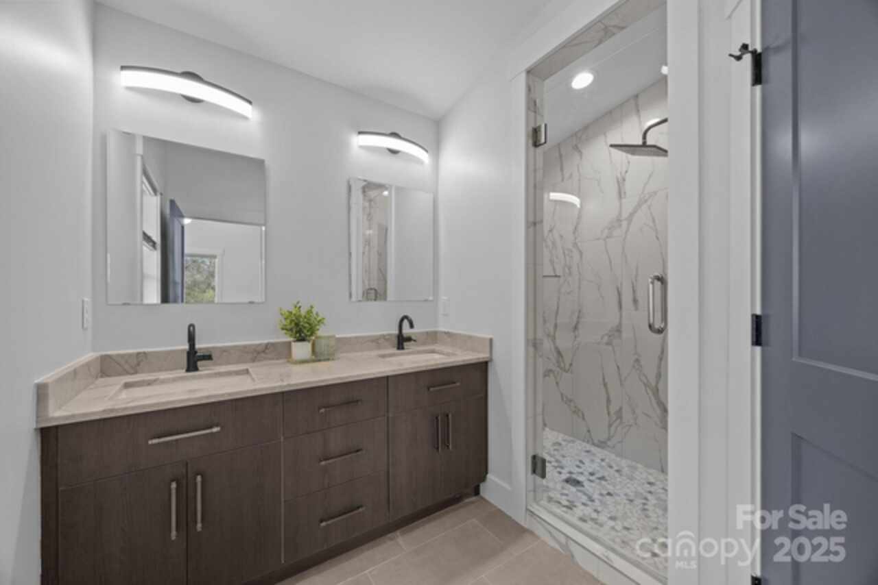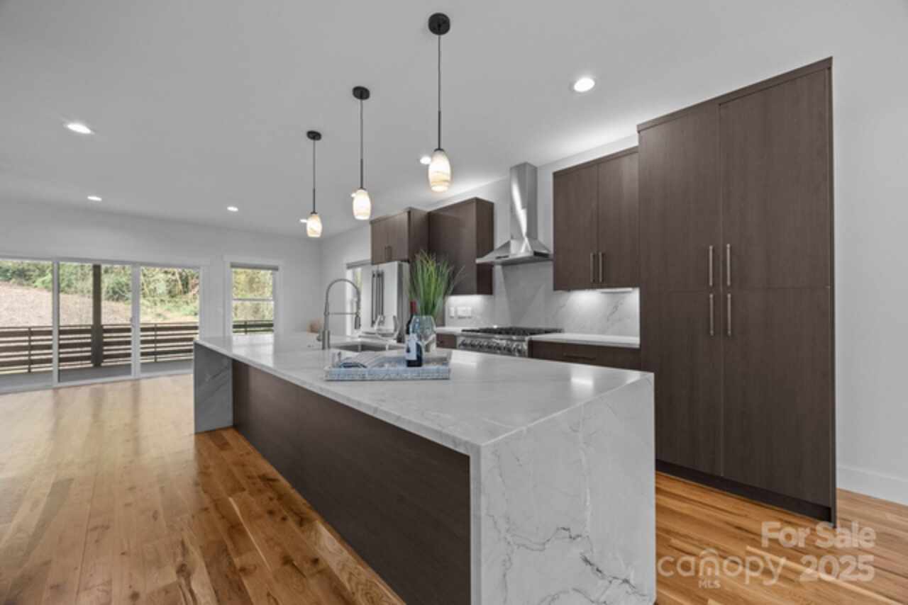 Modern Craftsman with tons of style! Discover a seamless flow between the living room, dining area and kitchen on the main level. Entertaining is made easy with the help of a large quartz waterfall island to gather. Sliding doors lead you to the expansive back deck and let in lots of natural light. The gas fireplace ensures you can stay cozy all winter long. The staircase steals the show with a shiplap accent wall and 3 large windows. The upper level provides the primary suite featuring a private balcony, walk-in closet, full bath with double vanities and gorgeous tiled shower. 2 additional bedrooms, a second full bath off the hall and the thoughtfully placed laundry closet complete this level. You will appreciate the beautiful hardwood floors, gorgeous tile, tankless hot water heater, stainless steel appliances, soft close cabinetry and exquisite trim throughout the home. Conveniently located near Biltmore Village, this could be the perfect place for you to call your own!