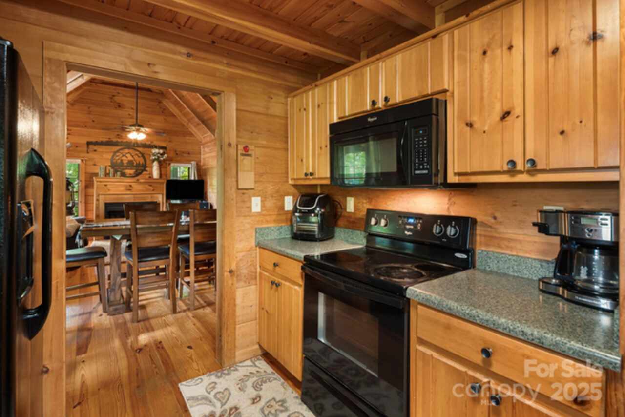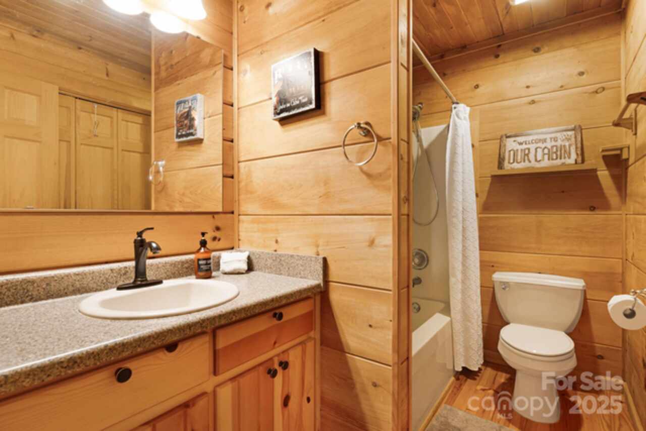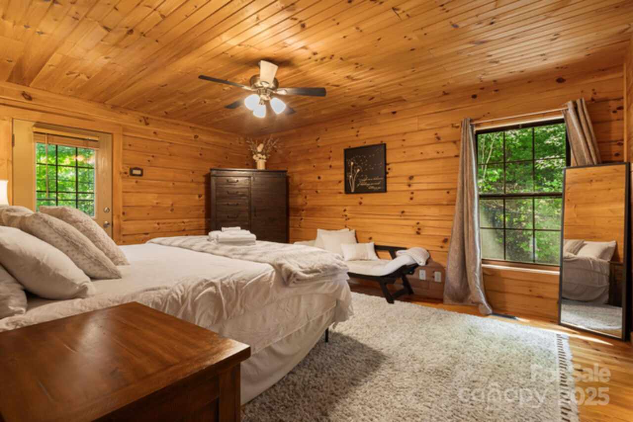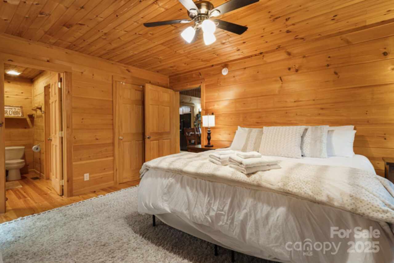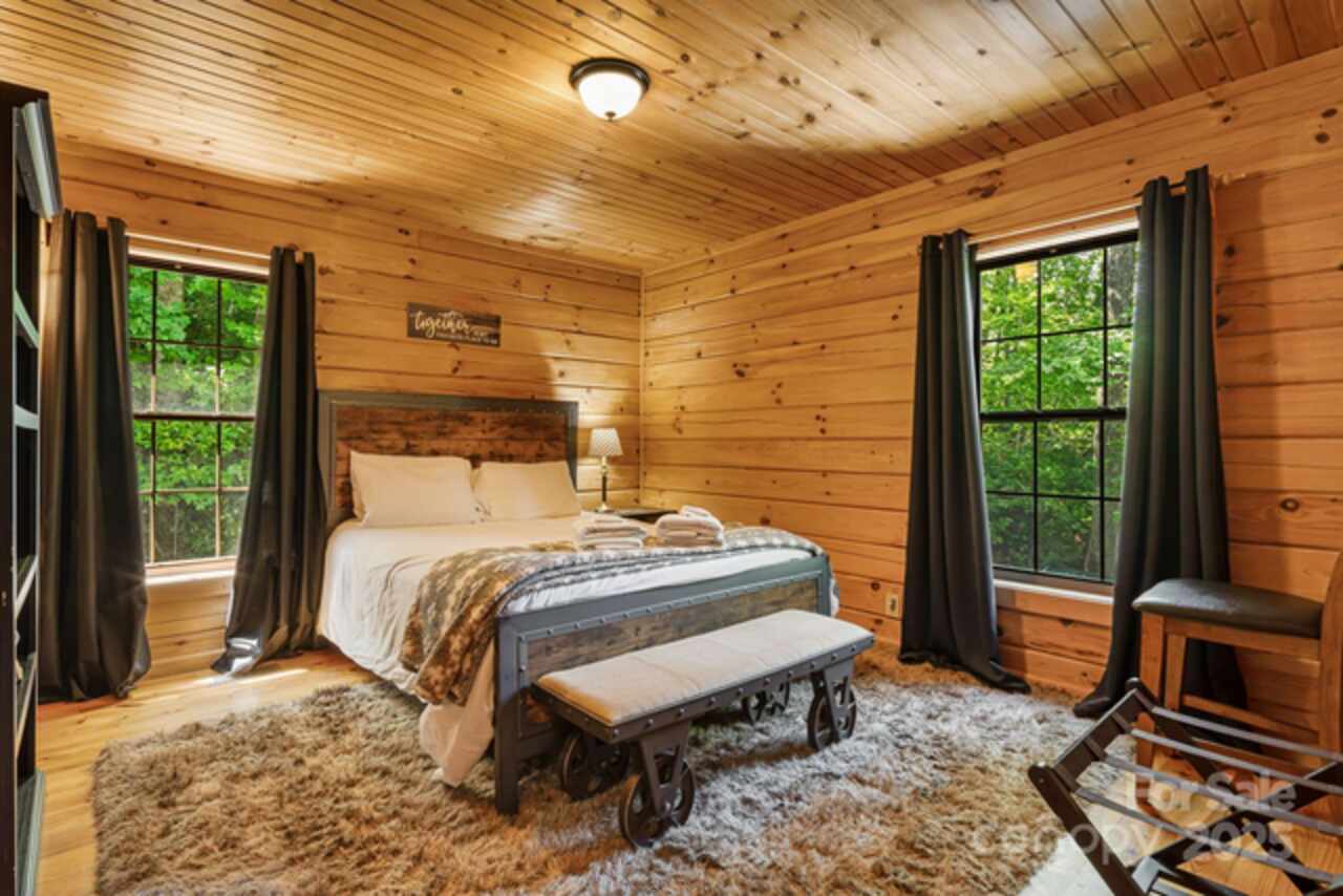 Welcome to your quintessential cabin in the woods—without the steep mountain drive! Nestled in a serene and private setting, this retreat is just 20 minutes to Black Mountain, 15 minutes to Fairview, and 30 minutes to Asheville. Inside, the open floor plan flows to a wraparound rocking-chair porch, ideal for soaking in the peaceful surroundings. A fenced yard with gated driveway adds both charm and security, while the fire-pit and hot tub invite relaxation under the stars. The primary suite offers private deck access, and a fun ladder-accessed loft provides extra character. The efficient galley kitchen includes a pantry, and the full basement offers abundant space with finishing potential—perfect for a workshop, studio, lounge, or office. Whether you’re seeking a full-time home, weekend getaway, or rental investment, this cabin offers the ideal balance of comfort, privacy, and accessibility, plus a strong vacation rental history when not enjoyed by its current owner.