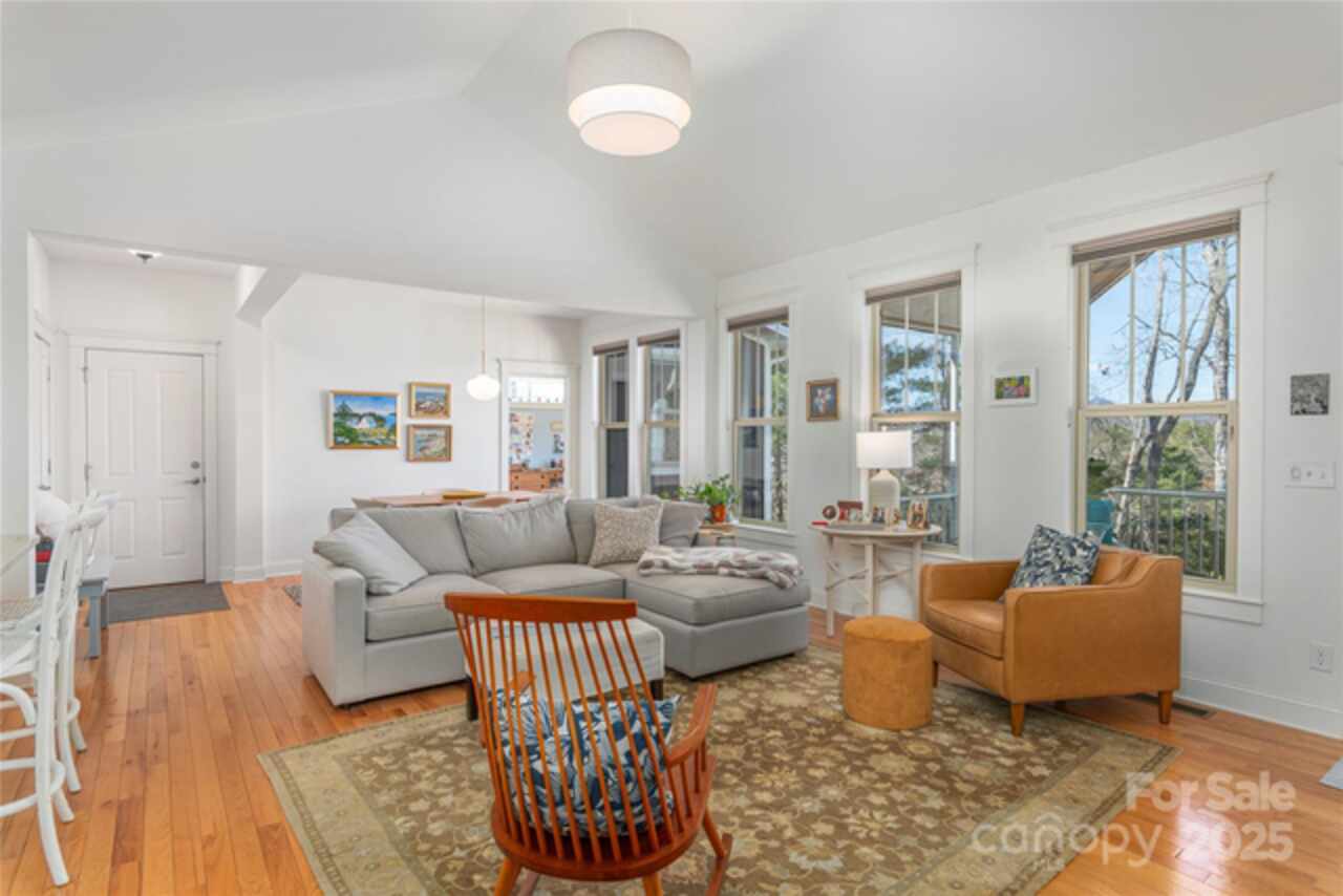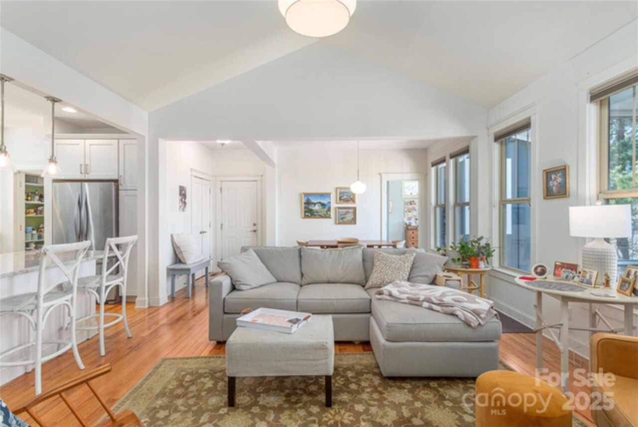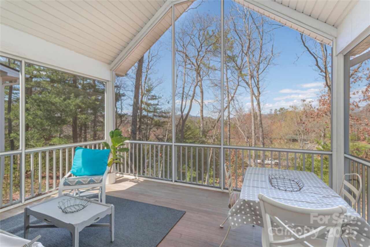 Experience single-level living at its finest in this striking, meticulously maintained 3BR/2BA retreat on a private wooded lot in Biltmore Lake’s award-winning community. This open-concept home features vaulted ceilings, hardwood floors, and abundant natural light. The sun-dappled living room with rustic stone gas fireplace flows into a contemporary kitchen with granite counters, shaker cabinetry, and breakfast bar. Entertain in the dining area or from the vaulted, screened-in back porch with panoramic mountain views. Unwind in three spacious bedrooms (or two with office) and savor peaceful mornings on the covered front porch. The natural backyard offers easy maintenance and a walk-in crawlspace for storage. Located just a short drive or scenic stroll from the lake, this home offers prime access to Biltmore Lake’s many outdoor amenities, clubs, and community activities.