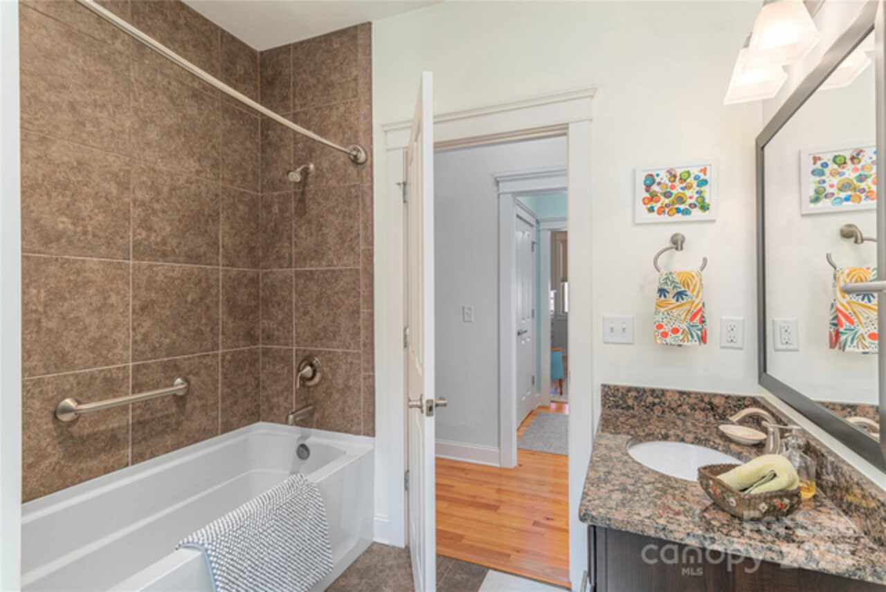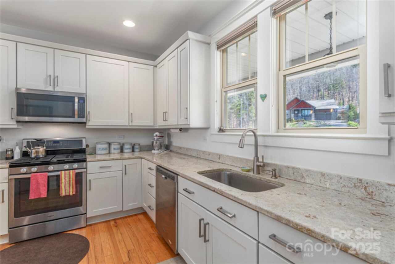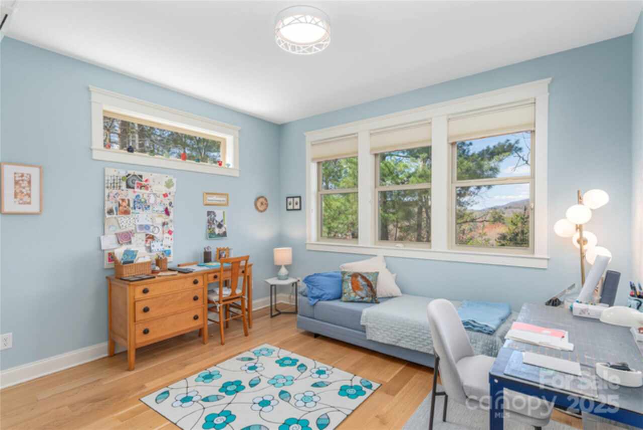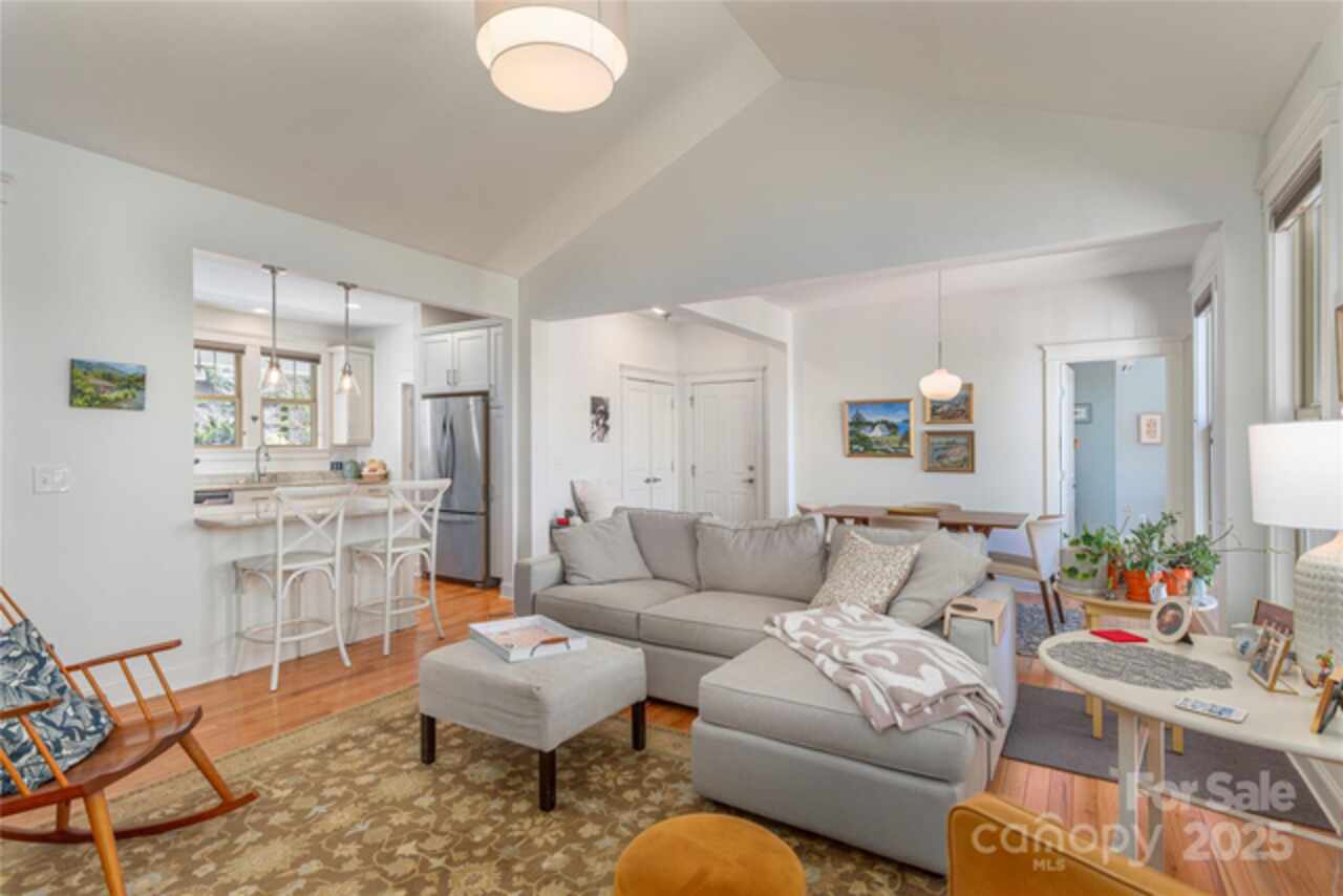 Experience single-level living at its finest in this striking, meticulously maintained 3BR/2BA retreat on a private wooded lot in Biltmore Lake’s award-winning community. This open-concept home features vaulted ceilings, hardwood floors, and abundant natural light. The sun-dappled living room with rustic stone gas fireplace flows into a contemporary kitchen with granite counters, shaker cabinetry, and breakfast bar. Entertain in the dining area or from the vaulted, screened-in back porch with panoramic mountain views. Unwind in three spacious bedrooms (or two with office) and savor peaceful mornings on the covered front porch. The natural backyard offers easy maintenance and a walk-in crawlspace for storage. Located just a short drive or scenic stroll from the lake, this home offers prime access to Biltmore Lake’s many outdoor amenities, clubs, and community activities.